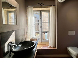 La suite des templiers a une superficie de 38 m2 avec une vue imprenable sur l'Eglise de Collias. Salle de bain privative entiérement équipée avec douche et WC